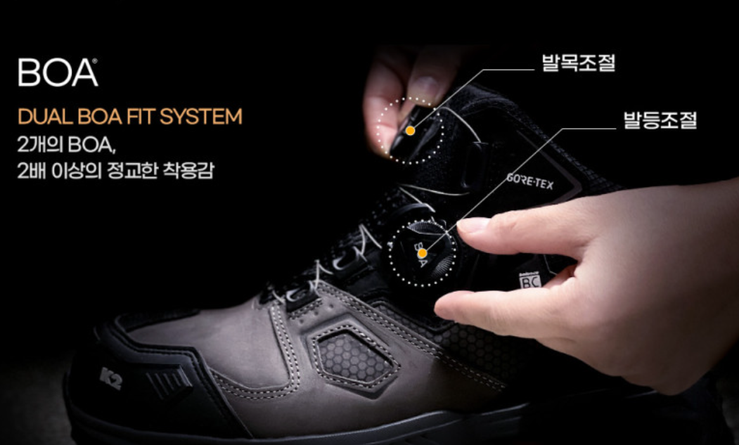 조절할 수 있게 해주는 보아 다이얼 시스템으로 안전화를 신고 벗기 매우 편하다!