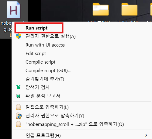 오토핫키가 해당 확장자 명을 인식하기 위해 파일 이름 끝에 .ahk 라고 붙여줍니다.