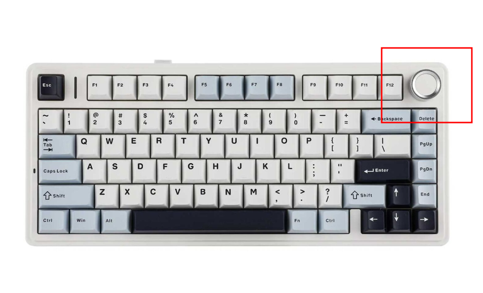이 키보드에는 우측상단에 좌우로 돌릴 수 있는 노브가 달려 있어요.