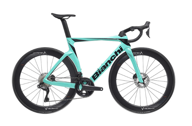 최신 올트레 RC는 비앙키의 혁신적인 에어로 설계가 적용된 플래그쉽 모델로, 공기역학적 성능이 매우 뛰어남.