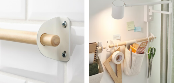 벽면에 부착할 수 있는 레일 형태의 걸이식 조리대인데요, 파우더 코팅된 스틸과 투명 래커 처리된 자작나무 원목 소재로 제작을 하여 원목 특유의 자연스러운 느낌을 잘 살렸어요.
