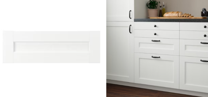 서랍앞판인데 엔셰핑이라고 붙은 품명들은 모두 포일 마감처리 되어 있어 내습성이 높아 주방에서 물기 걱정이 없도록 제작하고 있네요.