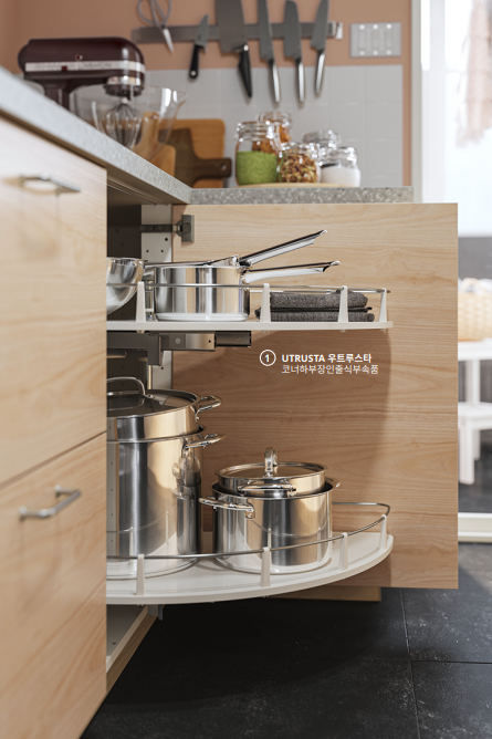 코너 하부장 인출식 부속품이라고 안내되어 있는데요, 싱크대 하부장에 설치하여 스윙형으로 열고 꺼낼 수 있도록 되어 있어요.