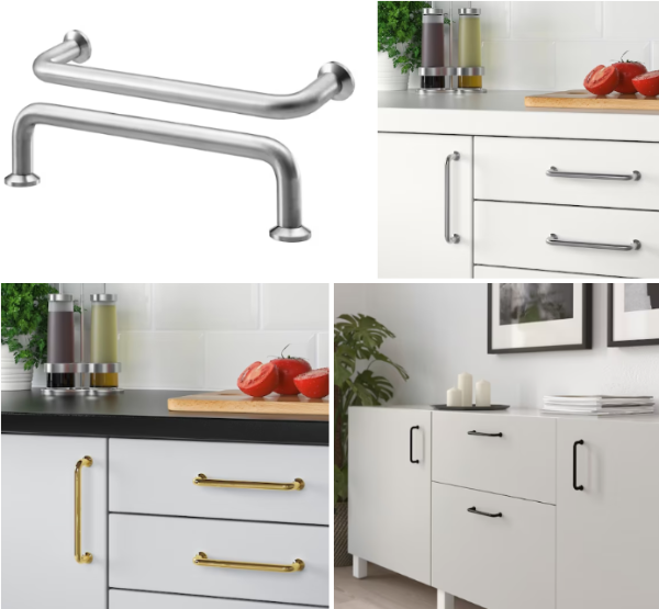 스테인리스스틸 소재의 손잡이 2개 세트예요.