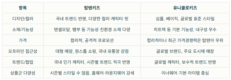 탑텐키즈와 유니클로키즈 장단점 비교 요약